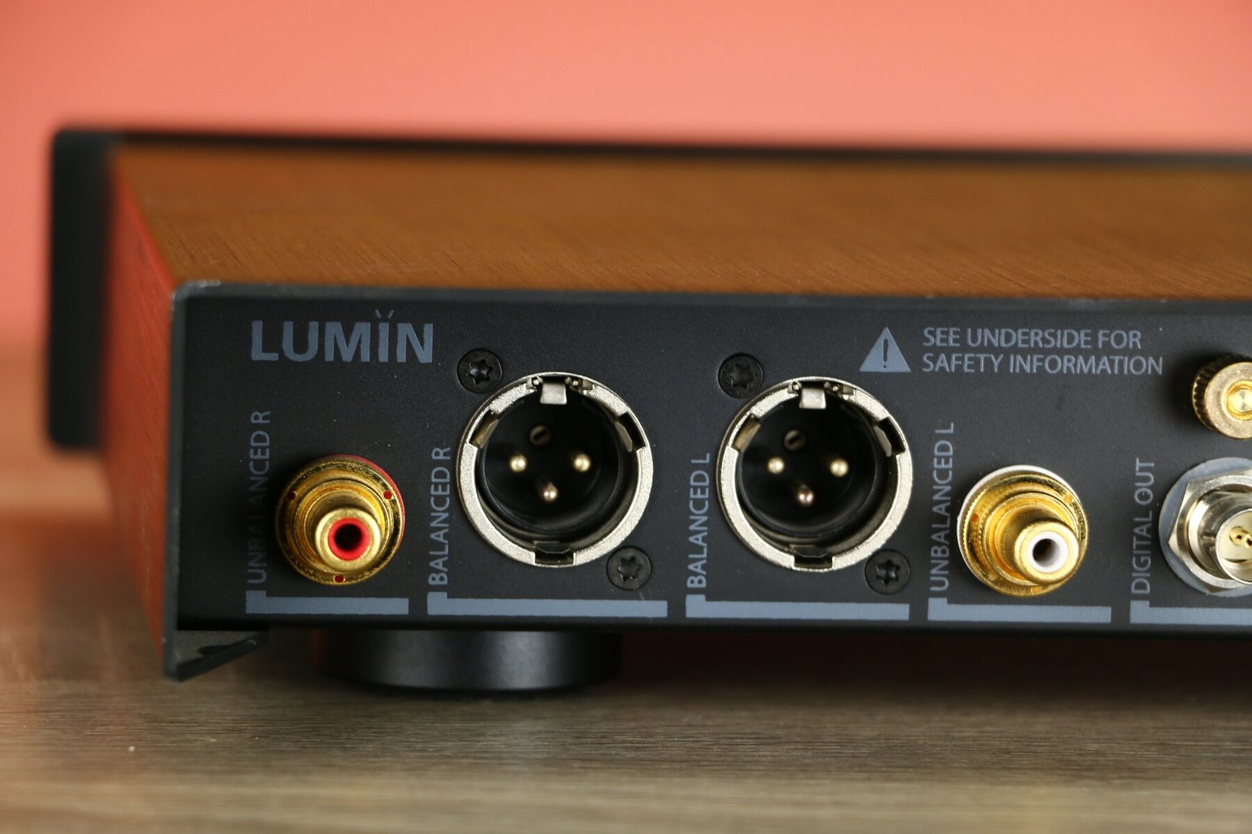Über welche Ausgänge verfügt der LUMIN D2?Der LUMIN D2 verfügt über symmetrische XLR-Ausgänge (4Vrms) und unsymmetrische RCA-Ausgänge (2Vrms).