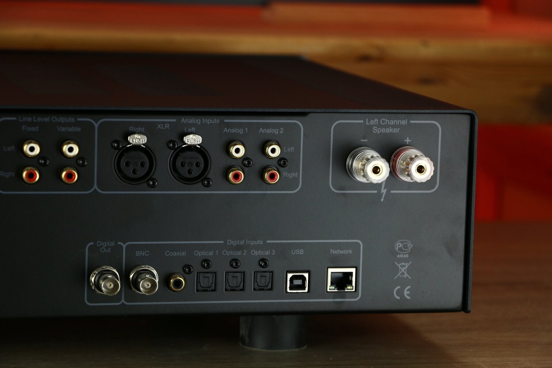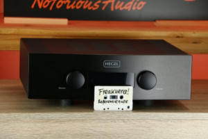Dikke Hegel! Met de gewaardeerde interne dac. Een ongekende kracht onderin. Houdt de laagunits stevig vast, en perst vanaf dat punt de kleinste golfjes lage frequenties secuur de ruimte in. Het podium dat hij neerzet is groot, buiten de speakers, en alles is zeer strak gepositioneerd.
