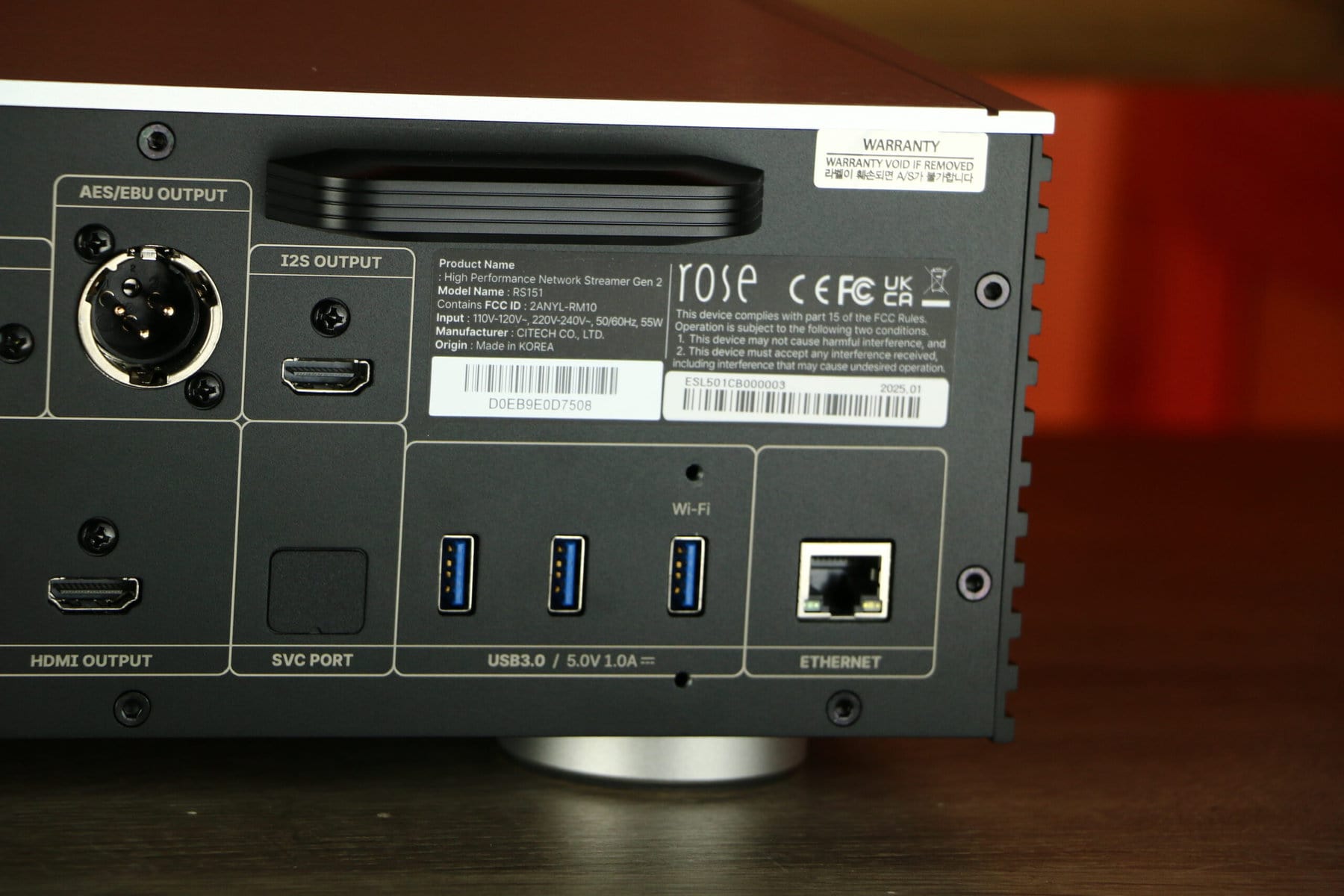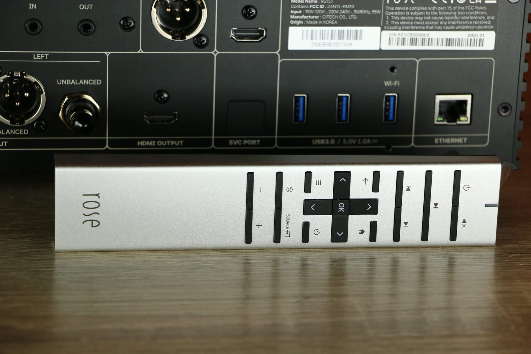 Het apparaat beschikt over een 15,4-inch Full HD IPS LCD-touchscreen met een resolutie van 1920 x 382 pixels. Het chassis is vervaardigd uit precisie-gefreesd massief aluminium, wat bijdraagt aan de duurzaamheid en vermindering van trillingen en ruis. Met afmetingen van 429 x 320 x 124 mm en een gewicht van 11 kg is het een solide constructie. Het systeem draait op een aangepaste Android 12-gebaseerde Rose OS en wordt aangedreven door een Octa-Core RK3588 CPU en een ARM Mali-G610 MC4 GPU. Het beschikt over 8 GB LPDDR4X-geheugen en 32 GB eMMC-opslag, uitbreidbaar via USB, MicroSD of een 2,5-inch SSD. Voor audioverwerking is een ESS SABRE ES9039PRO DAC-chip geïntegreerd, ondersteund door een hoogprecisie Femto Clock met ROSE DPC™-module. Het apparaat ondersteunt zowel bedrade Gigabit Ethernet als draadloze connectiviteit via een externe USB WiFi-dongle. Bluetooth 5.4 met aptX is eveneens aanwezig. Aan aansluitingen biedt het onder andere optische en coaxiale ingangen, AES/EBU, HDMI eARC en USB-B, evenals gebalanceerde XLR- en ongebalanceerde RCA-uitgangen.