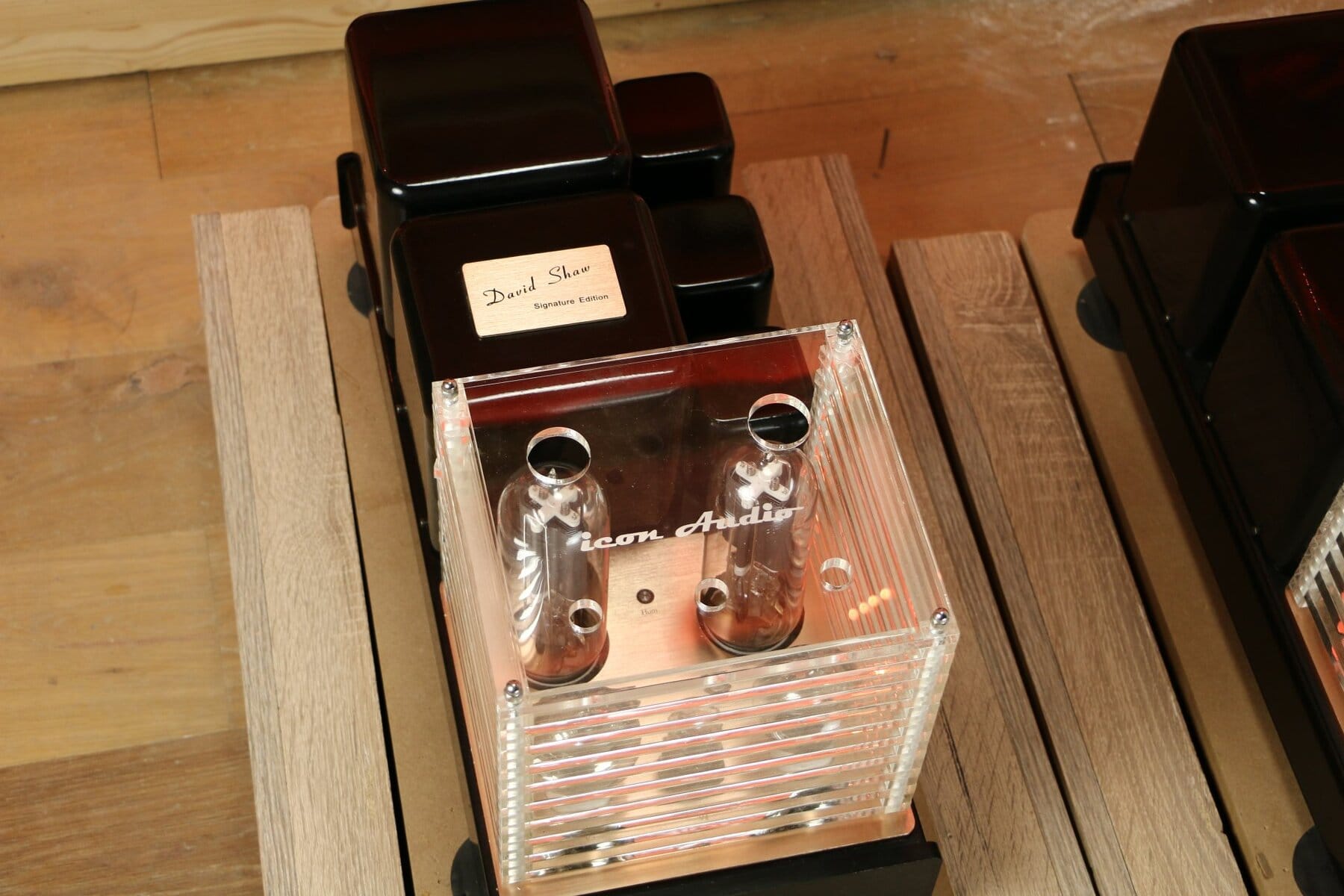 De Icon Audio MB845 MK2 David Shaw Edition is een monoblokversterker die gebruikmaakt van 845 triodebuizen. Het ontwerp is handbedraad zonder printplaten, wat bijdraagt aan een zuivere signaaloverdracht. De versterker is voorzien van een verbeterde voeding en een geüpgradede drivertrap, wat resulteert in een krachtig en gedetailleerd geluid. De MB845 MK2 heeft zowel hoge als lage gevoeligheidsinstellingen, waardoor hij compatibel is met zowel passieve als actieve voorversterkers. Het geluid wordt vaak omschreven als een ‘ijzeren vuist in een fluwelen handschoen’, wat duidt op een combinatie van kracht en finesse.