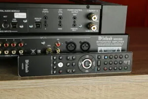 Alles staat op de juiste plek. Met kracht! Maar kalm aan hoor, dit is McIntosh… en zij maken versterkers met specificaties die er toe doen. Deze 100 watts zijn heerlijke stabiel. Sound? Geen geschreeuw, geen scherpte, geen haast. Met analoge én digitale ingangen en natuurlijk het blauw.