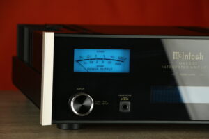 Alles staat op de juiste plek. Met kracht! Maar kalm aan hoor, dit is McIntosh… en zij maken versterkers met specificaties die er toe doen. Deze 100 watts zijn heerlijke stabiel. Sound? Geen geschreeuw, geen scherpte, geen haast. Met analoge én digitale ingangen en natuurlijk het blauw.