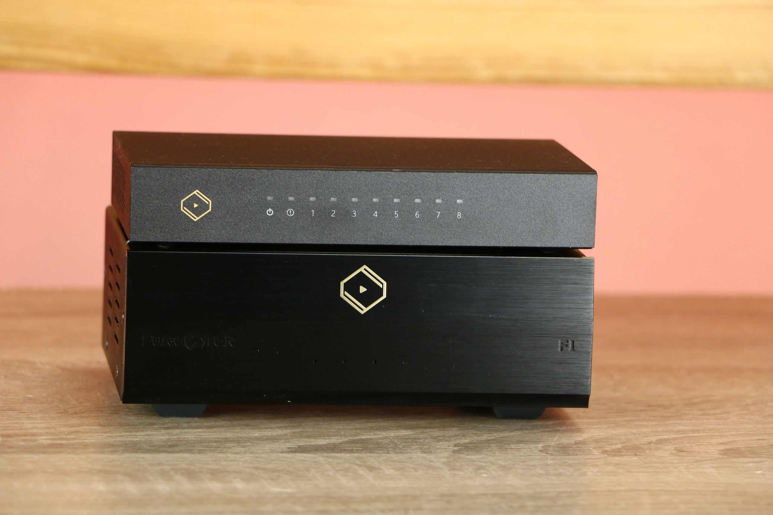 De Silent Angel Bonn N8 is een netwerkswitch die zich richt op het verbeteren van de audiokwaliteit binnen een netwerk. Met acht gigabit Ethernet-poorten biedt het de mogelijkheid om meerdere audioapparaten tegelijkertijd aan te sluiten. Door de toepassing van een TCXO (Temperature Compensation Crystal Oscillator) wordt een nauwkeurige kloksnelheid bereikt, wat resulteert in een stabielere en zuiverdere signaaloverdracht. Daarnaast is de Bonn N8 uitgerust met twee elektrische ruisisolatiecircuits in zowel het stroomcircuit als het klokgeneratiecircuit, wat bijdraagt aan een vermindering van elektrische ruis en interferentie. Het apparaat wordt geleverd met een medische kwaliteit voedingsadapter en kan worden geüpgraded met een lineaire voeding voor verdere verbetering van de prestaties. Deze kenmerken maken de Bonn N8 geschikt voor liefhebbers die streven naar een verbeterde muziekstreamingervaring via diensten zoals Tidal, Qobuz of vanuit een NAS.